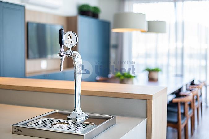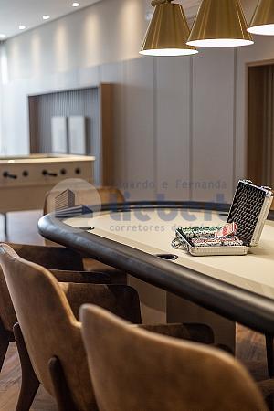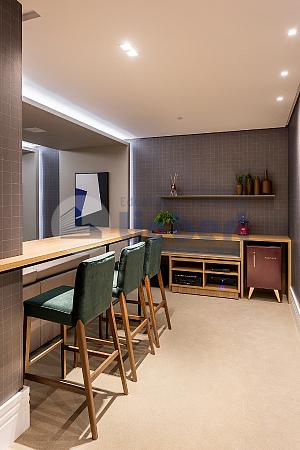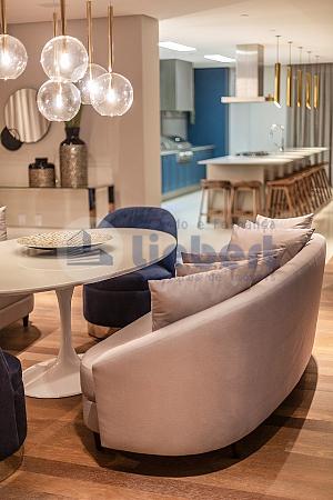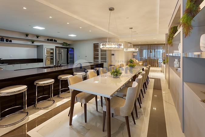 • Living com cozinha gourmet integrados com cerca de 115 m²